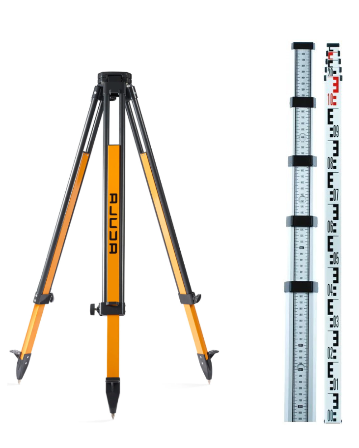 Комплект ACULA Геодезический штатив Geo 12-S (высота 99-173 см, фикс. ножек на винтах, алюминиевый нивелирный, площадка 125 мм, резьба 5/8") + Нивелирная рейка TLS 5 (5м)