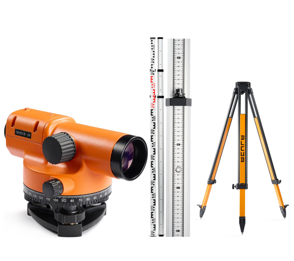 Комплект ACULA Оптический нивелир NIVEX B-24 (кратн.х24; точн.±2.0 мм/км;объектив 36 мм) + Геодезический штатив Geo 12-S (высота 99-173 см, фикс. ножек на винтах, алюминиевый нивелирный, площадка 125 мм, резьба 5/8") + Нивелирная рейка TLS 3 (3м)