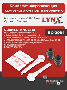 Комплект направляющих тормозного суппорта переднего (направляющая Ø 11/15mm, суппорт Akebono) LYNXauto BC-2084. Применение: MITSUBISHI Outlander/Airtrek I-III 02> / Galant(E3-EA) 88-04 / Pajero II 90-00 / Pajero Sport I 98> / Delica / Space Gear 95-02 / L200(K6/K7) 96-07 / L300 94-00 / L400/Space Gear 95-02 / Space Runer 91-99 / Space Wagon 91-04, CITROEN C-Crosser 07>, PEUGEOT 4007 07>