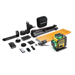 Комплект Промышленного лазерного уровня LINEPRO 4D и Штатив-штанги с треногой STAND 3800 MAXIMUM - Сбалансированный и компактный лазерный уровень проецирующий четыре замкнутые плоскости. Специальный излучатель проецирует лучи на 360° размечая пространство 16 яркими линиями. Взаимно перпендикулярные лазеры позволяют выполнить абсолютно любую разметку. Идеально подходит при проведении строительных или ремонтных работ. Благодаря мощному магнитному успокоителю лазеров обладает стабильной работой.