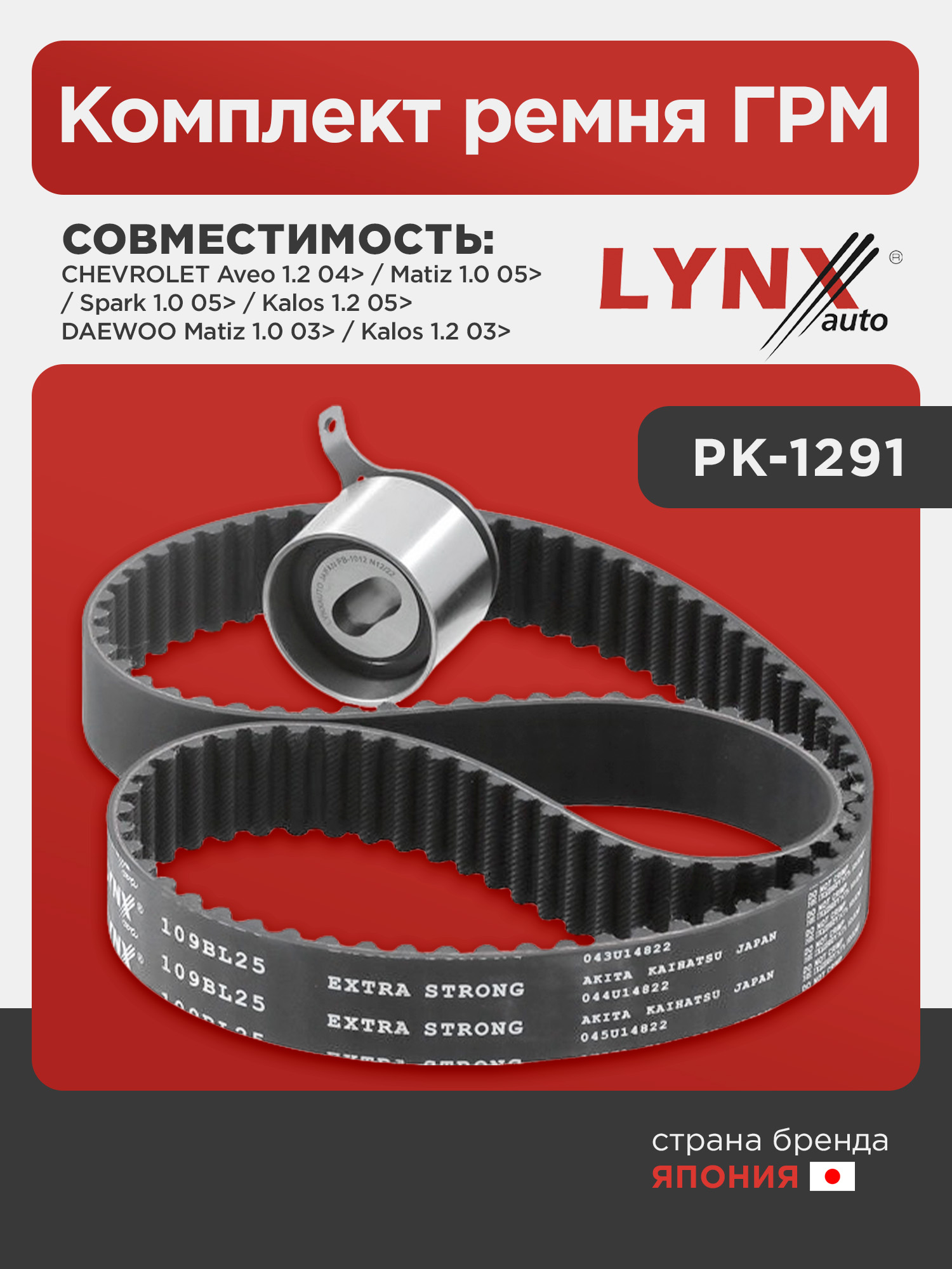 Комплект ремня ГРМ LYNXauto PK-1291. Для: CHEVROLET Aveo 1.2 04> / Matiz 1.0 05> / Spark 1.0 05> / Kalos 1.2 05>, DAEWOO Matiz 1.0 03> / Kalos 1.2 03>