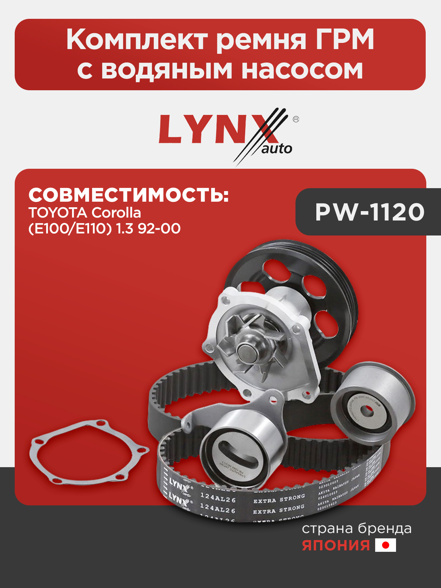Комплект ремня ГРМ с водяным насосом LYNXauto PW-1120. Для: TOYOTA Тойота Corolla(Королла)(E100/E110) 1.3 92-00