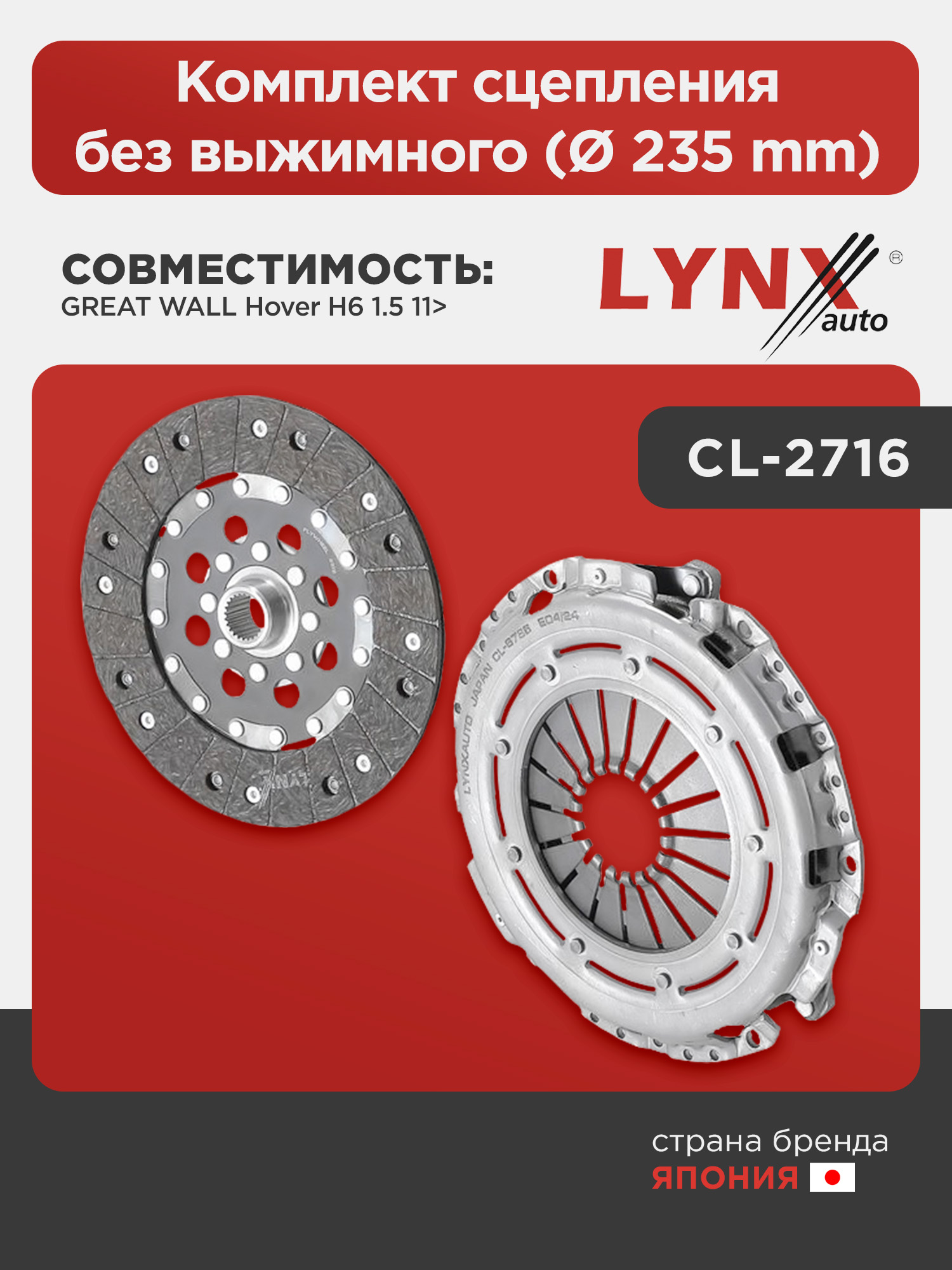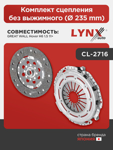 Комплект сцепления без выжимного (Ø 235 mm) LYNXauto CL-2716. Для GREAT WALL Hover H6 1.5 11>