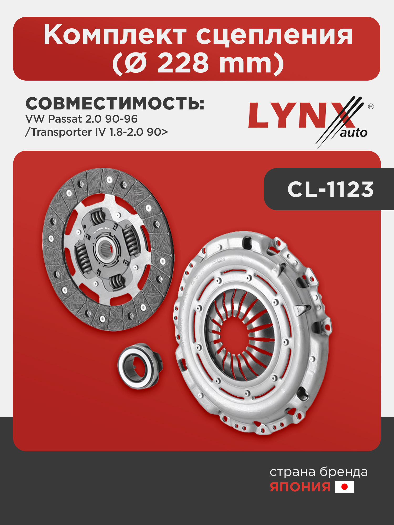 Комплект сцепления (Ø 228 mm) LYNXauto CL-1123. Для VW Фольксваген Passat(Пассат) 2.0 90-96/Transporter(Транспортер) IV 1.8-2.0 90>