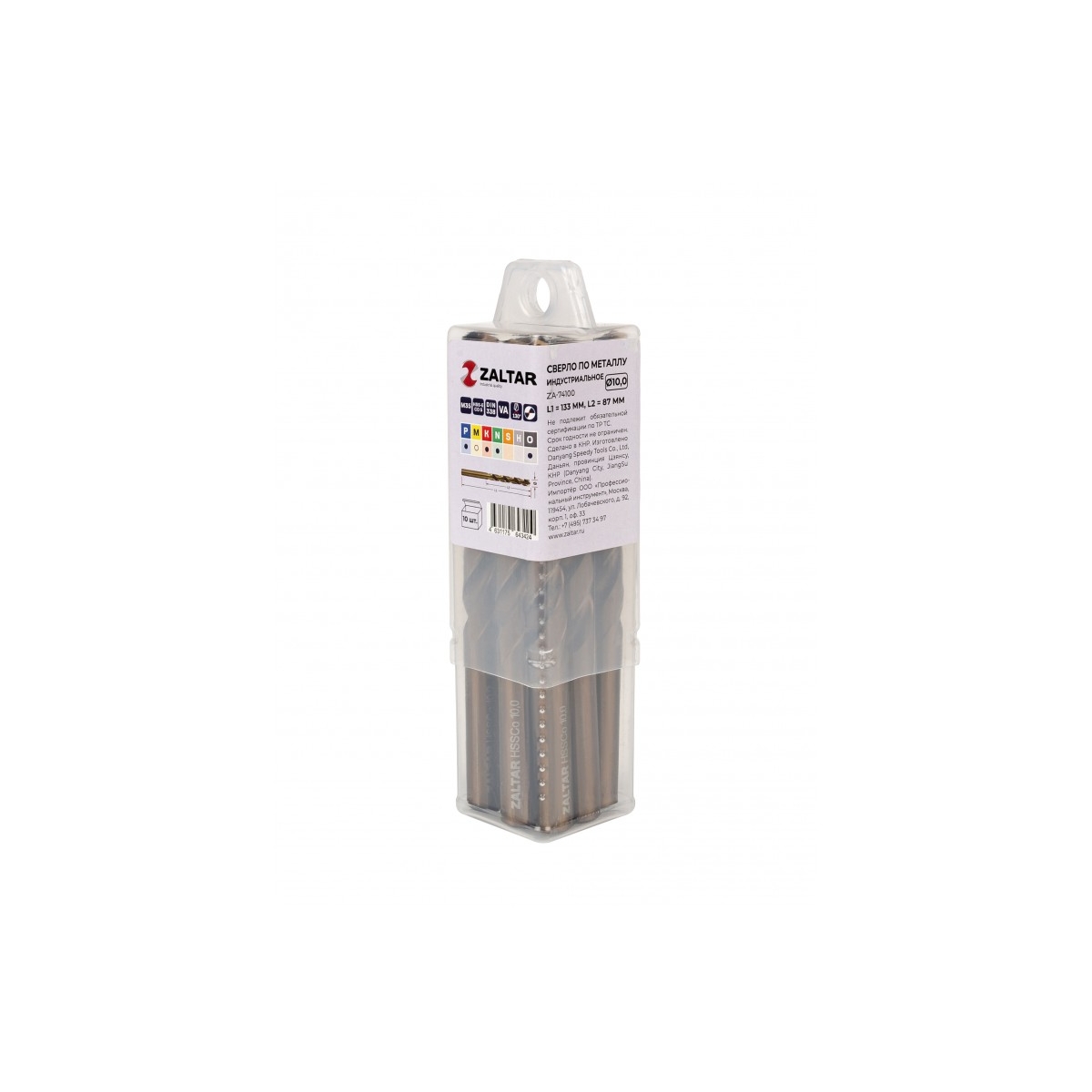 Комплект свёрл по металлу индустриальных ZALTAR 10 шт, DIN 338, HSS-E Co5, Тип VA, 5xD, Ø10.00 мм