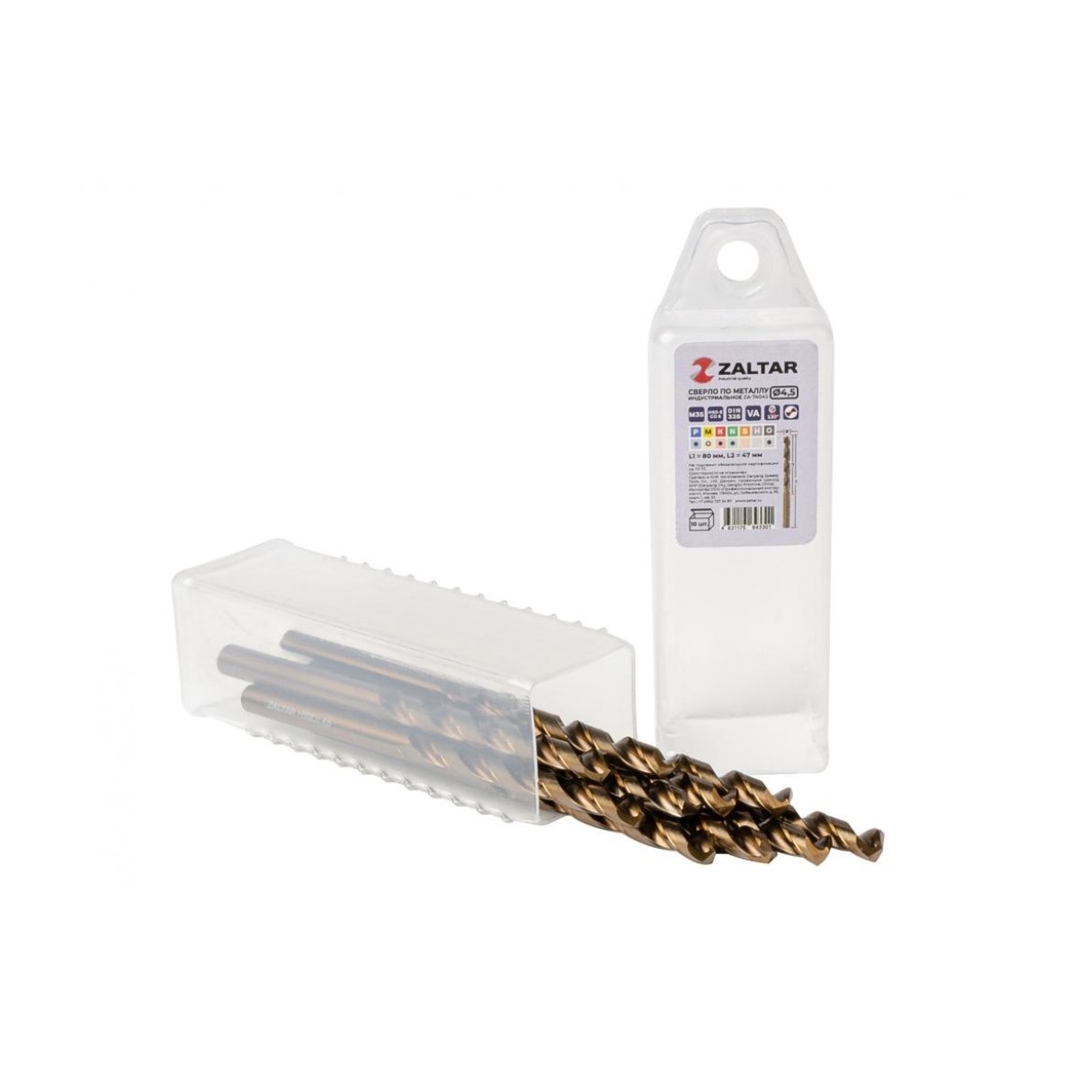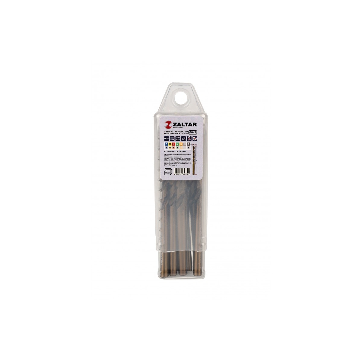 Комплект свёрл по металлу индустриальных ZALTAR 10 шт, DIN 338, HSS-E Co5, Тип VA, 5xD, Ø4.50 мм