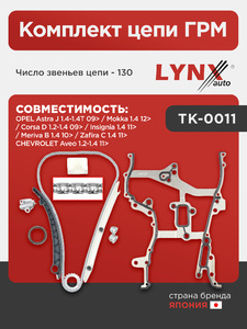 Комплект цепи ГРМ LYNXauto TK-0011. Применение: OPEL Astra J 1.4-1.4T 09> / Corsa D 1.2-1.4 09> / Insignia 1.4 11> / Meriva B 1.4 10> / Mokka 1.4 12> / Zafira C 1.4 11>, CHEVROLET Aveo 1.2-1.4 11>. Число звеньев цепи- 130.