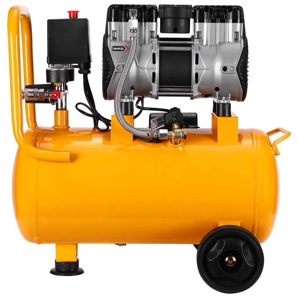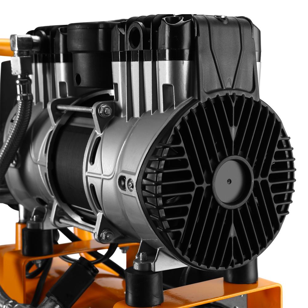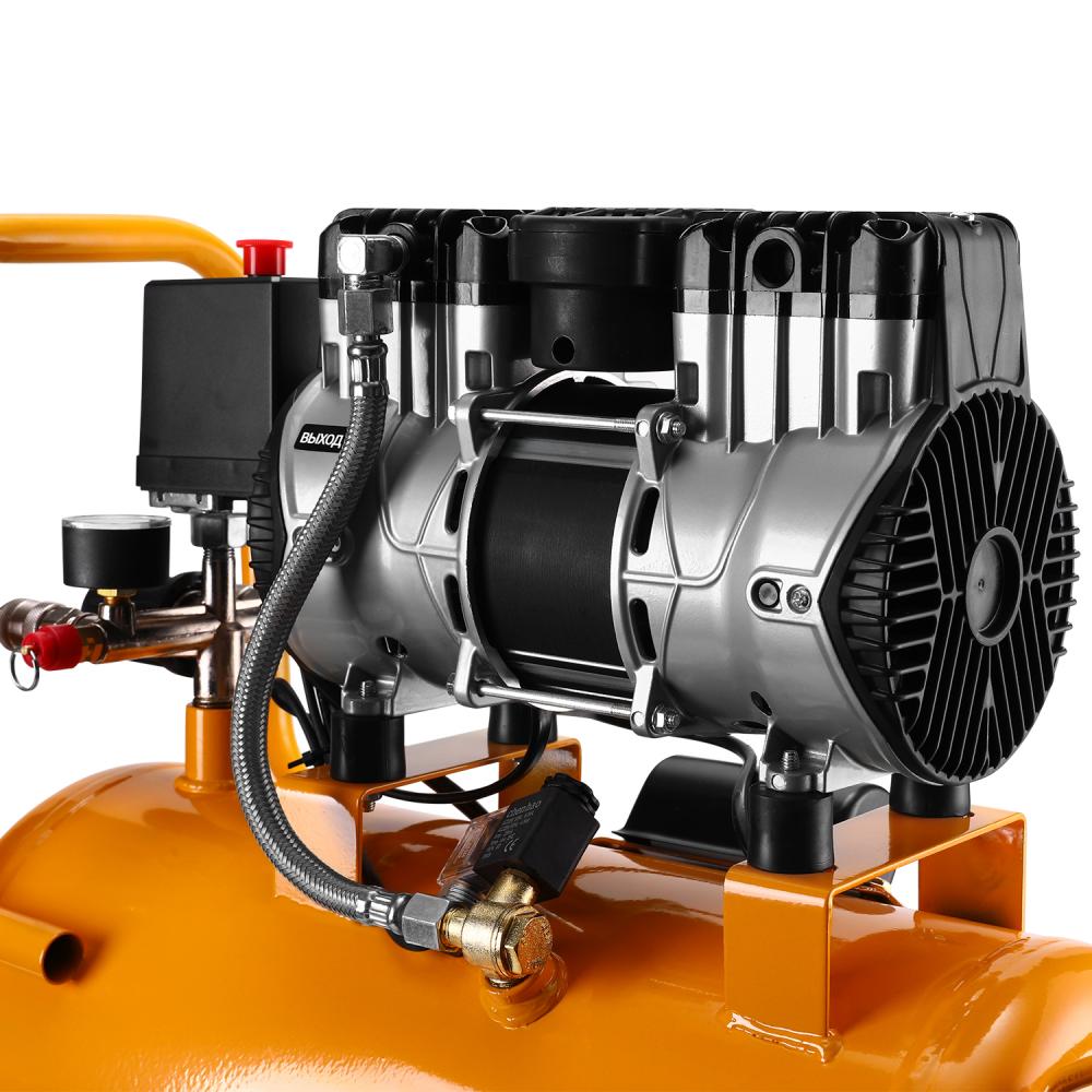 Ресивер объёмом 24 л позволяет аккумулировать сжатый воздух, снижая частоту включения компрессора и продлевая срок службы двигателя. Максимальное рабочее давление — 8 бар. Отсутствие необходимости в масляной смазке упрощает обслуживание и делает эксплуатацию чистой и безопасной даже в закрытых помещениях.