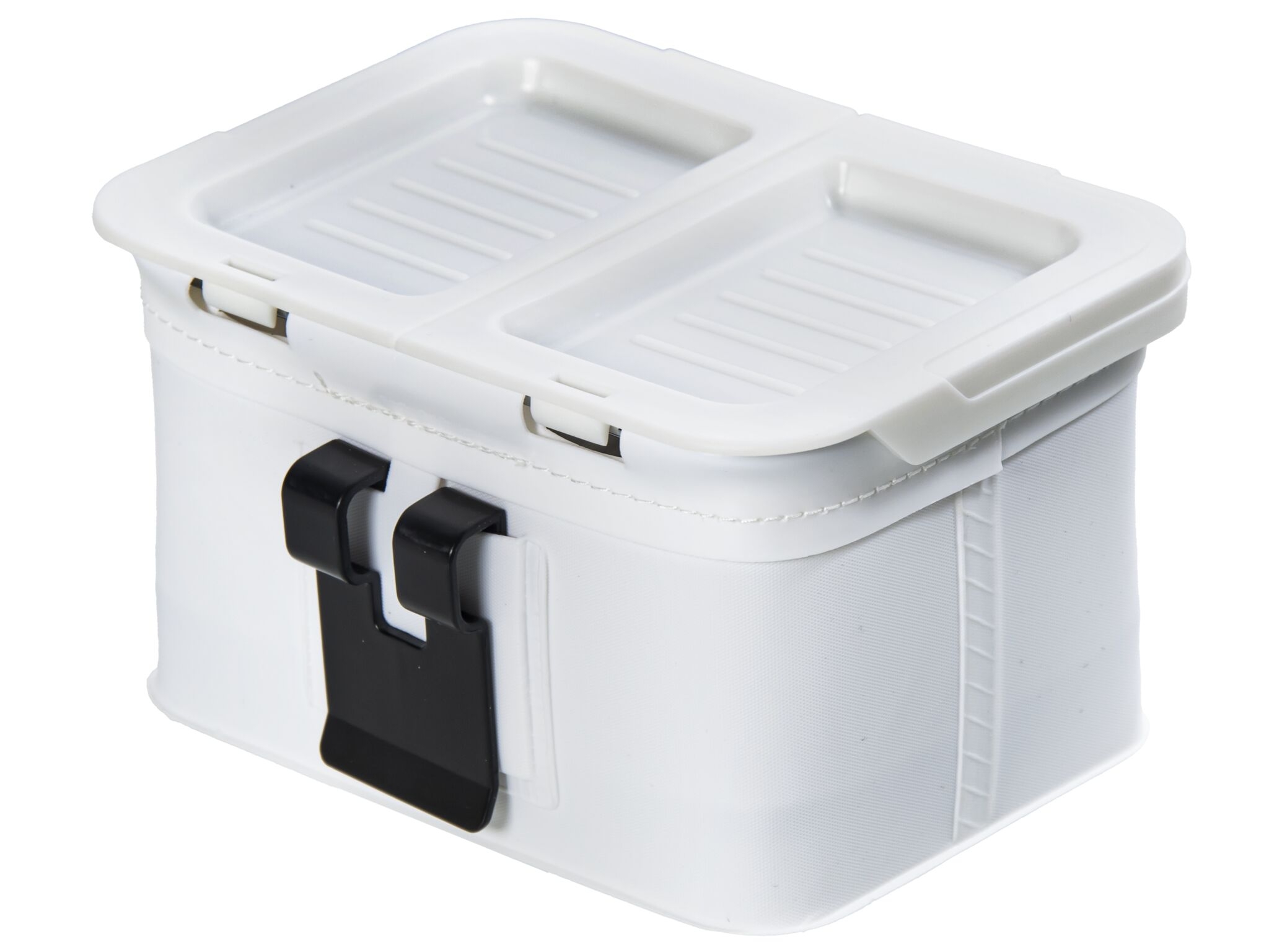 Конструкция коробки включает в себя эргономичные замки, гарантирующие надежную фиксацию крышек, а также перегородку, позволяющую хранить два разных типа наживки одновременно. Крышка коробки состоит из двух половин, каждая из которых может открываться самостоятельно, а также имеет углубление, позволяющие выкладывать на крышку небольшое количество наживки для быстрого доступа.