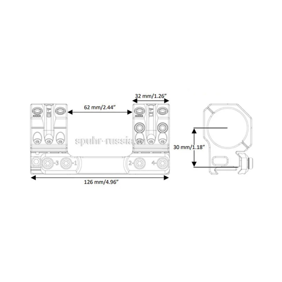- Кронштейн SPUHR Scope Mount 30мм на Picatinny, h=30мм, 6MIL;