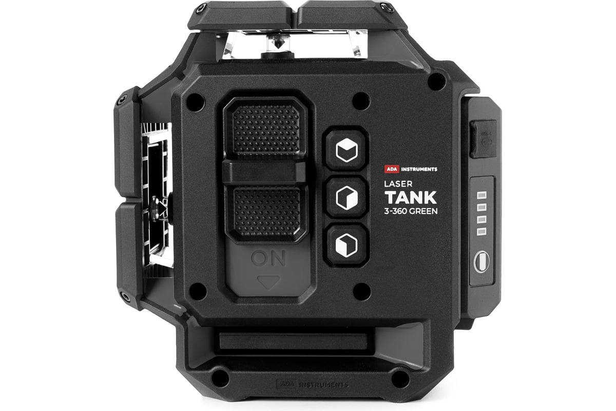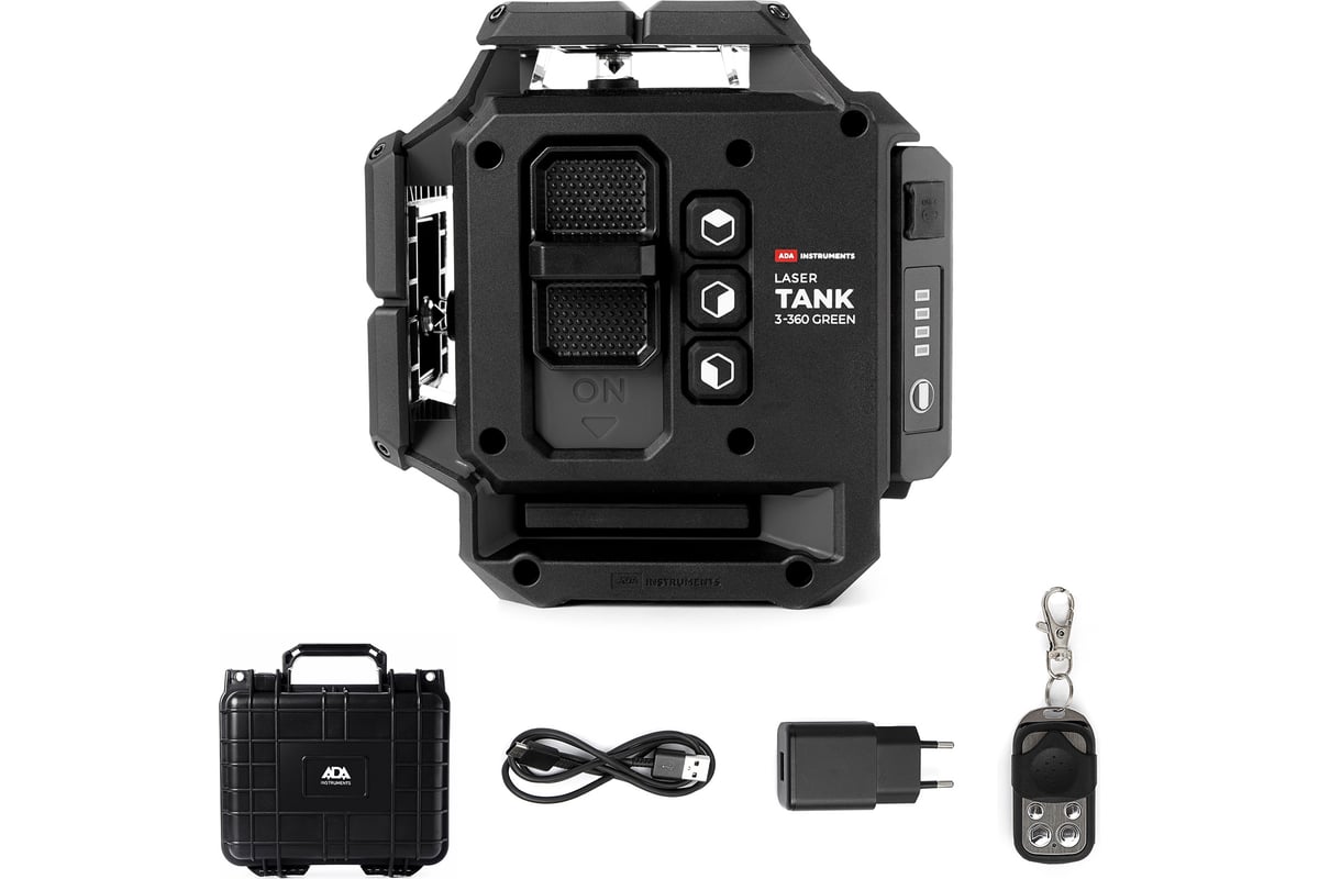 ADA LaserTANK 3-360 GREEN Basic Edition –профессиональный лазерный уровень ADA Instruments проецирующий три линии 360°. Взаимно перпендикулярные линии (одна горизонтальная и две вертикальные) позволяют выполнить абсолютно любую разметку. Идеально подходит при проведении строительных или ремонтных работ снаружи и внутри помещений.