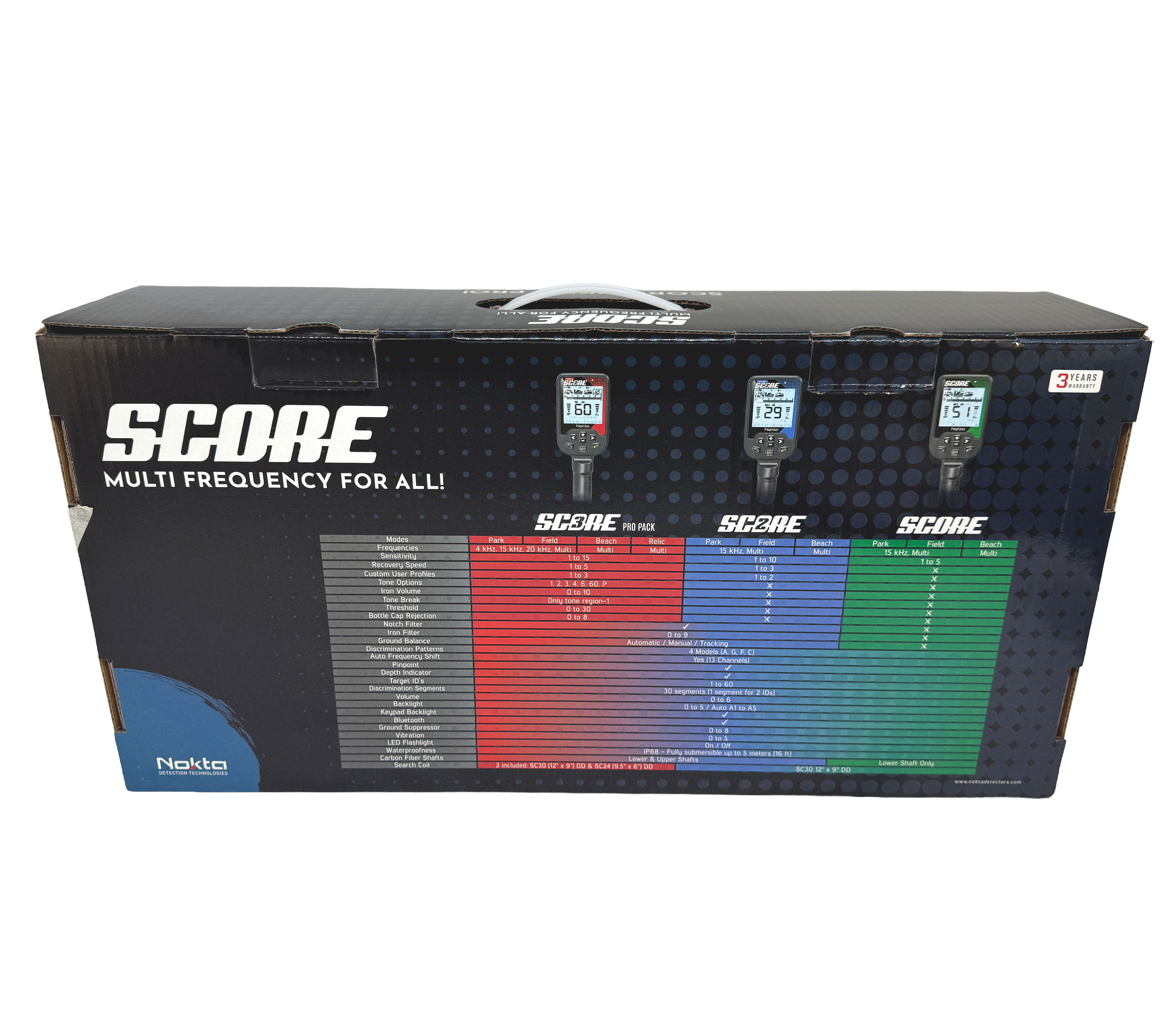 Поднимите свой уровень поиска сокровищ, не опустошая свой кошелек. Возможность одновременного использования нескольких частот серии SCORE переопределяет ваш опыт поиска, обеспечивая непревзойденную ценность без ущерба для первоклассного обнаружения. Пакет Triple Score PRO PACK AccuPoint предлагает больше вариантов частот (04 кГц, 15 кГц, 20 кГц, Multi) и настроек отклонения бутылочных крышек (от 0 до 8), обеспечивая еще больший контроль и точность в ваших поисках.