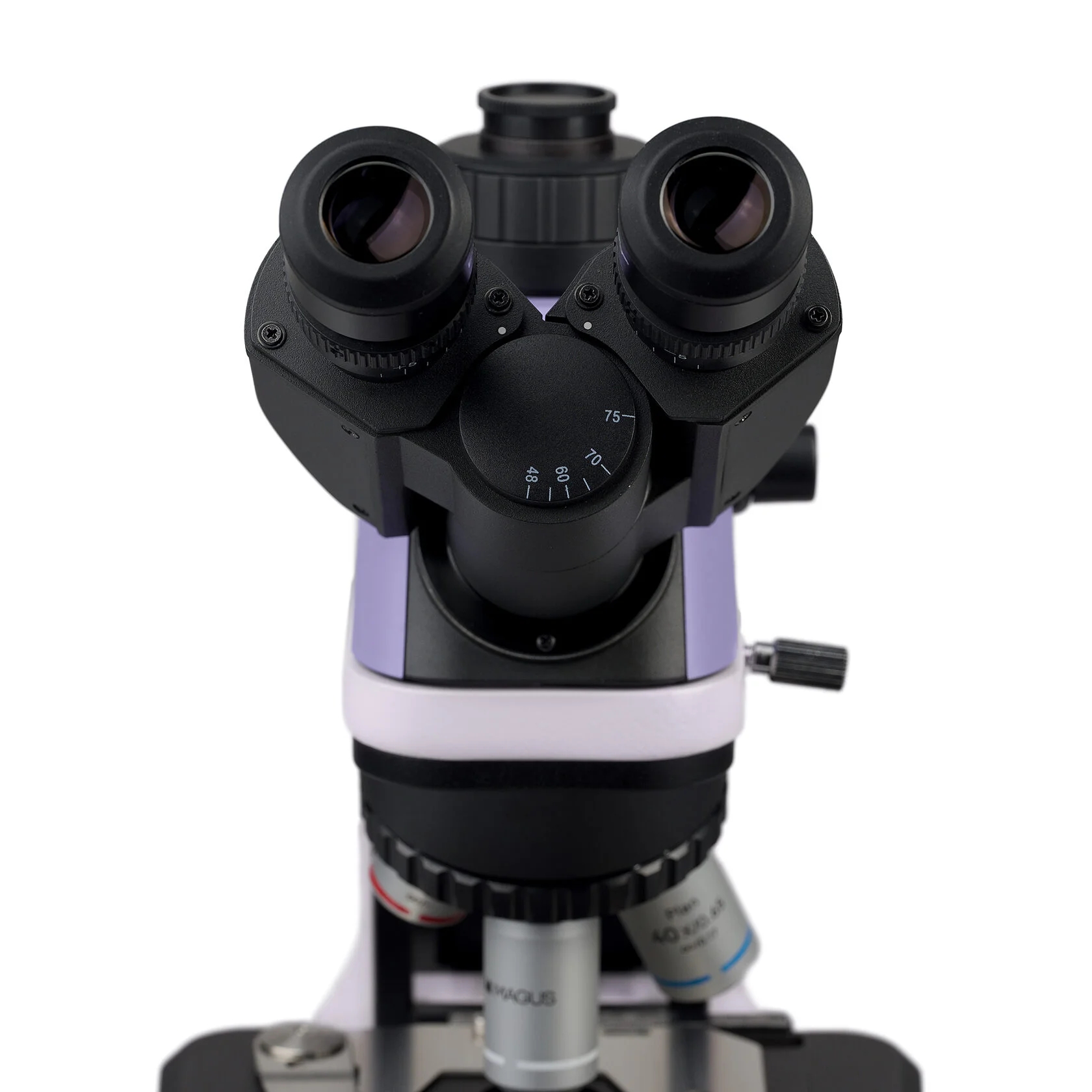- Тринокулярная насадка с вертикальным тубусом для установки цифровой камеры и изменением высоты для подстройки под рост наблюдателя; деление светового потока 0/100 и 100/0
