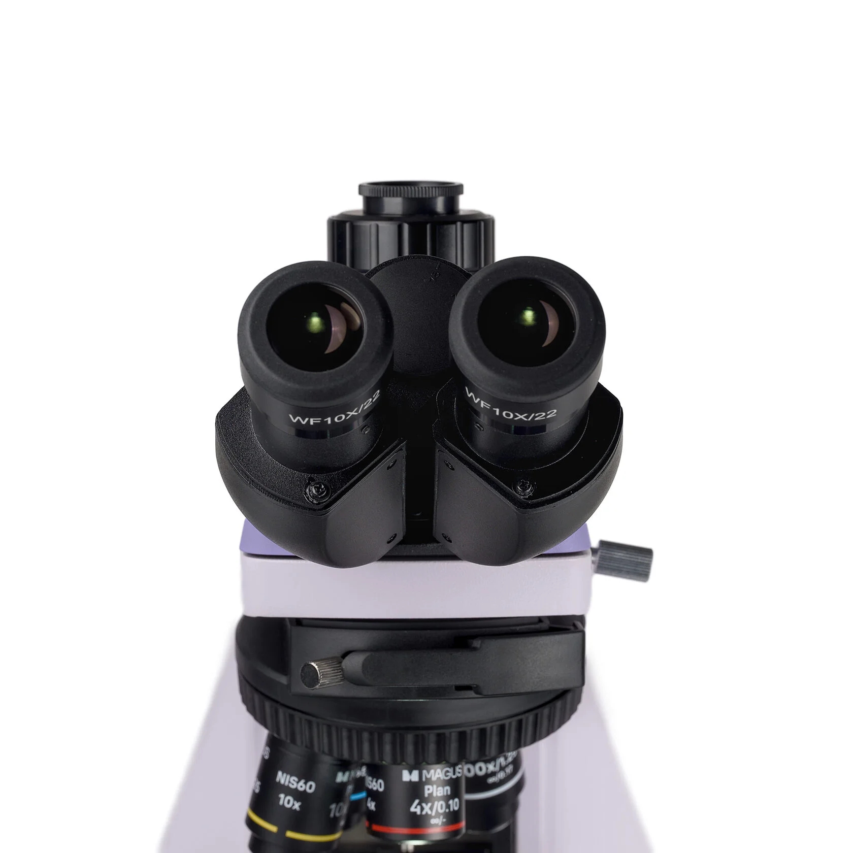 - Тринокулярная насадка с вертикальным тубусом для установки цифровой камеры и изменением высоты для подстройки под рост наблюдателя; деление светового потока 50/50