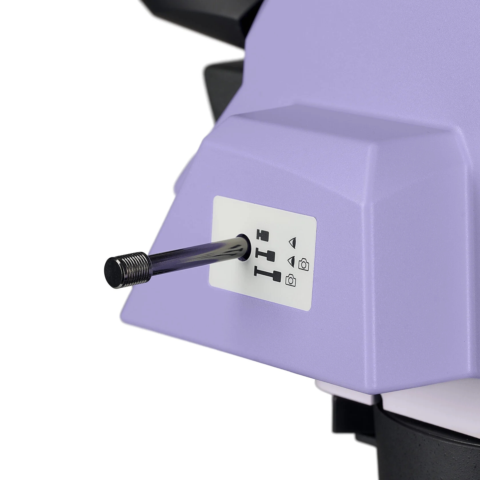 - Тринокулярная насадка с вертикальным тубусом для установки цифровой камеры и изменением угла наклона; переключение светового потока 0/100, 100/0 или 80/20