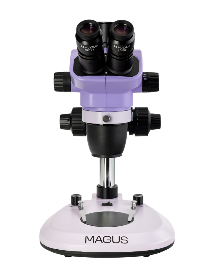 Модель MAGUS Stereo 8T имеет систему грубой и тонкой фокусировки. Ее ручки расположены на одной оси и находятся по обе боковины штатива. Тонкая фокусировка полезна при работе на больших увеличениях. Жесткость хода грубой фокусировки настраивается пользователем.