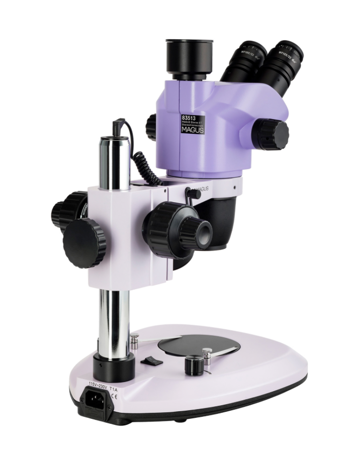 Стереомикроскоп спроектирован для работы с объемными образцами и для изучения их структурных элементов, он передает объем объекта и рельеф его поверхности. Модель MAGUS Stereo 8T оборудована встроенными осветителями для прозрачных и непрозрачных образцов. Среди доступных опций – работа в поляризованном свете и по темному полю (только при установке дополнительных аксессуаров).