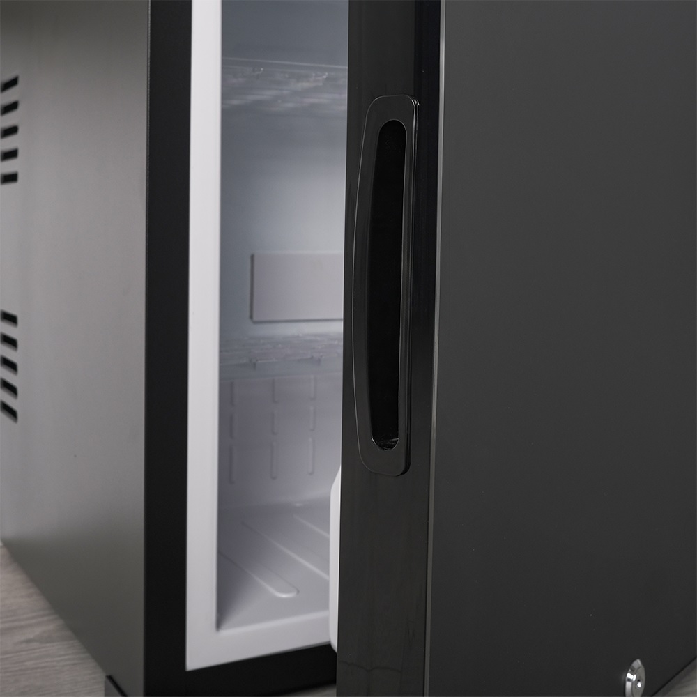 В основе работы MMT-30B лежит гибридная технология охлаждения. Такой принцип обеспечивает равномерное охлаждение, экономичность и отсутствие подвижных частей, делая прибор полностью бесшумным. Это особенно важно в местах, где тишина играет ключевую роль — в гостиницах, спальнях, рабочих кабинетах. Мини-бар поддерживает температуру от +4°C до +11°C при комнатной температуре 21°C, что идеально подходит для хранения напитков и легких закусок.