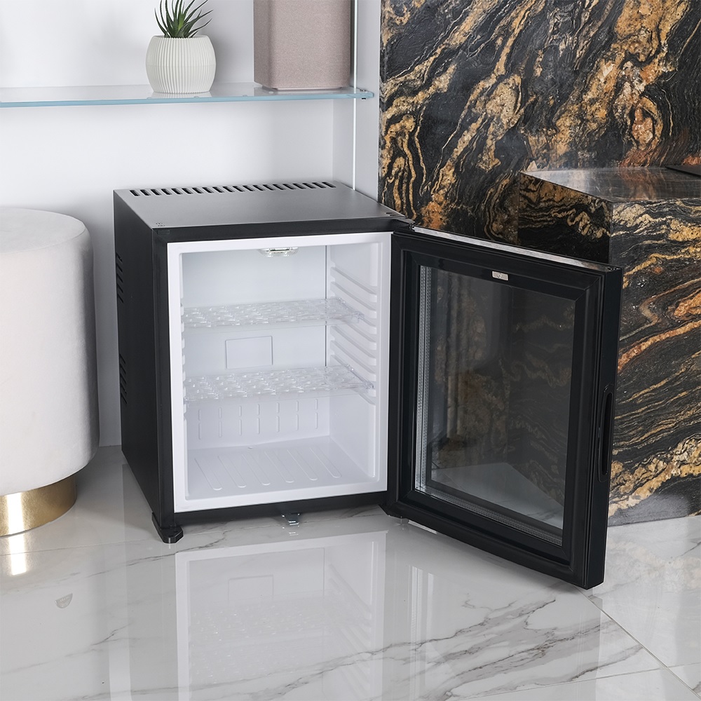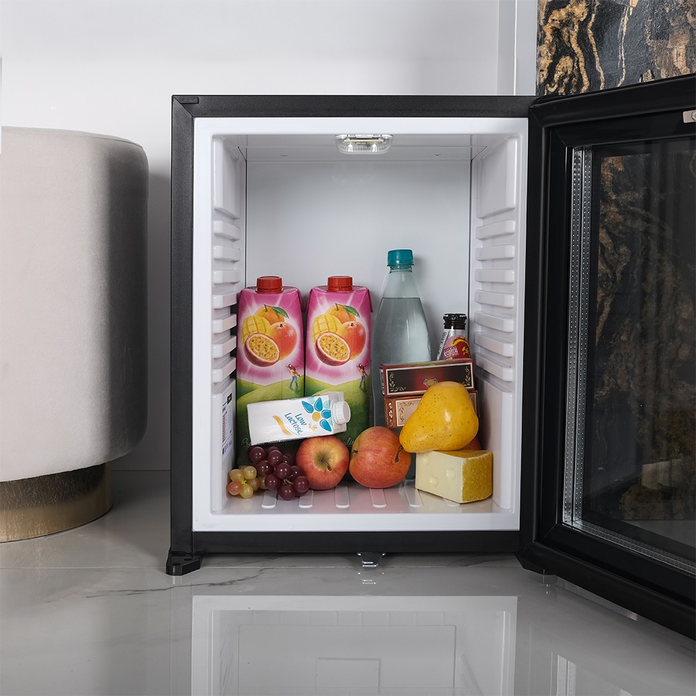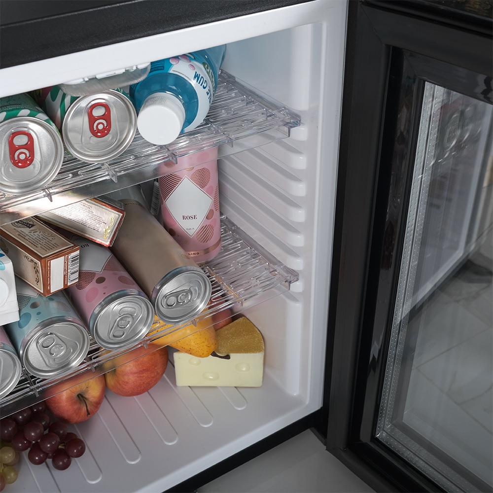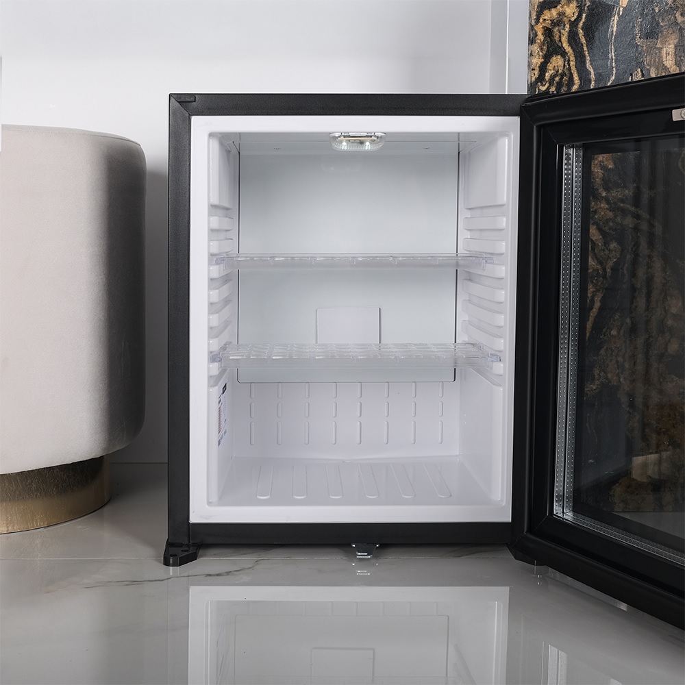 В основе работы MMT-30BG лежит гибридная технология охлаждения. Такой принцип обеспечивает равномерное охлаждение, экономичность и отсутствие подвижных частей, делая прибор полностью бесшумным. Это особенно важно в местах, где тишина играет ключевую роль — в гостиницах, спальнях, рабочих кабинетах. Мини-бар поддерживает температуру от +8°C до +11°C при комнатной температуре 21°C, что идеально подходит для хранения напитков и легких закусок.