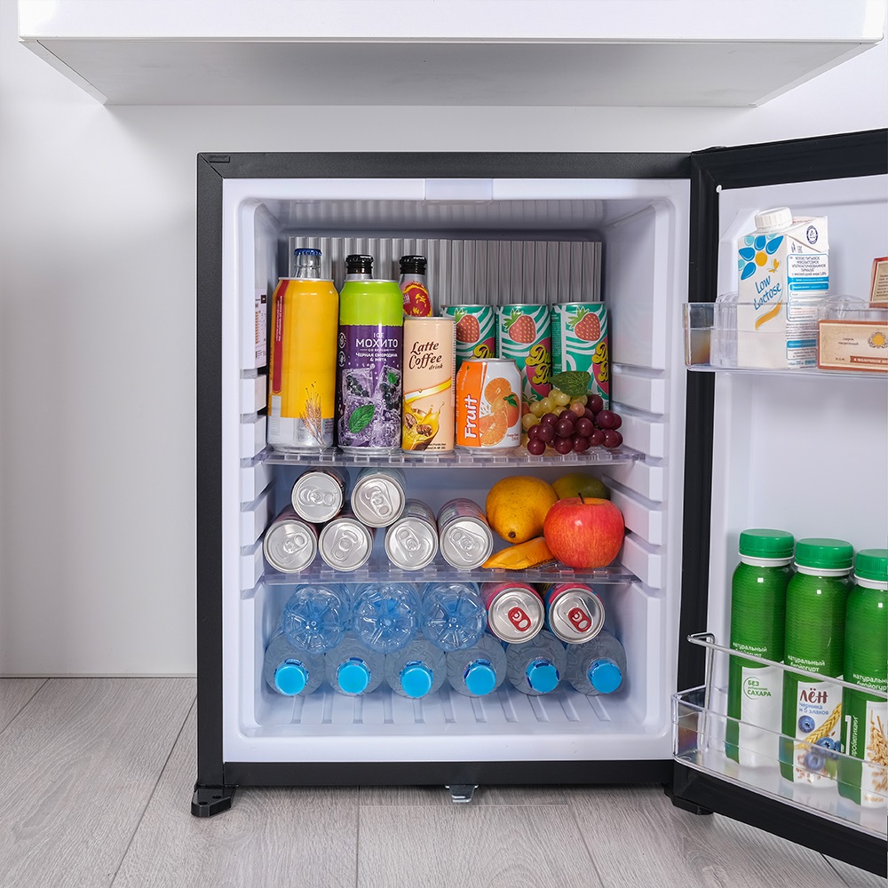 Абсорбционный минибар Meyvel MMA-50B — это практичное решение для тех, кто хочет хранить напитки и продукты в удобном и компактном формате. Его можно расположить как отдельностощее устройство в гостиничном номере, кабинете или спальне или «спрятать» в мебели, сэкономив место. Второй вариант особенно удобен для небольших комнат.