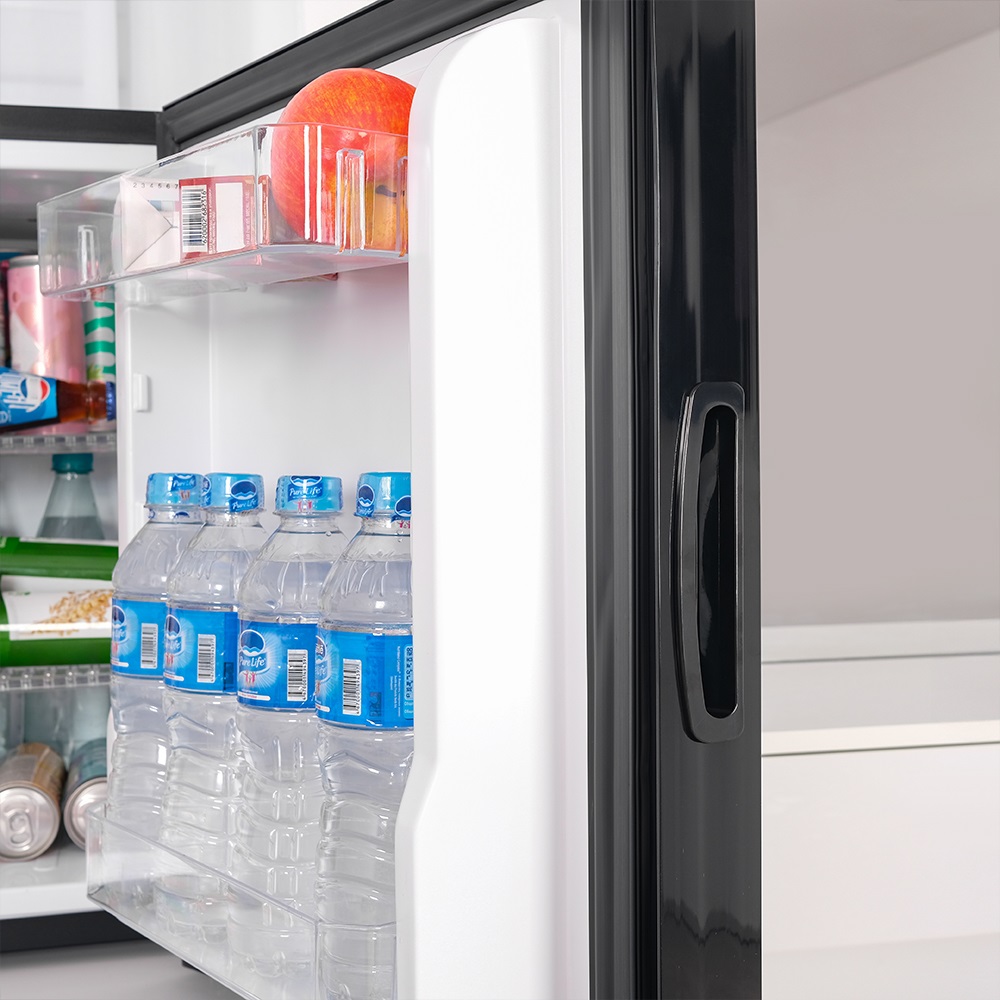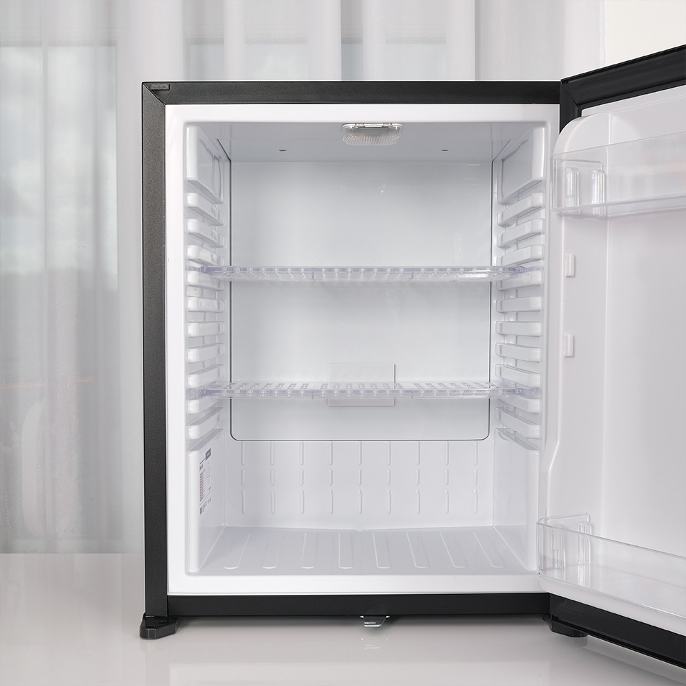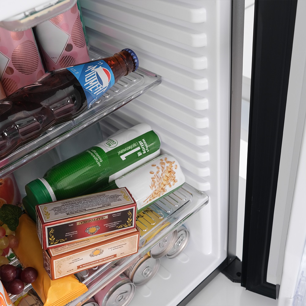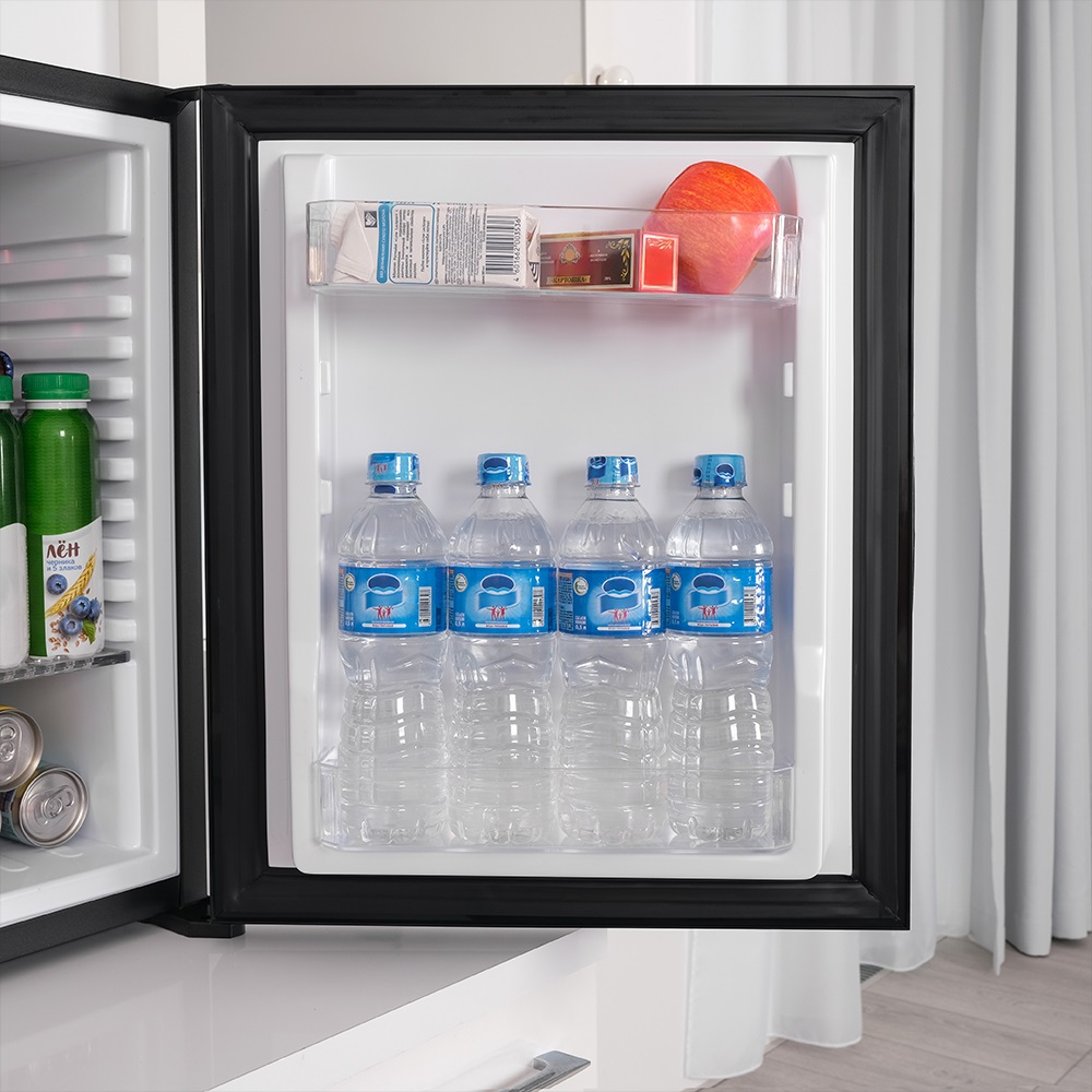 Основа охлаждающей системы мини-бара — гибридная технология, обеспечивающая равномерное охлаждение и низкое энергопотребление. Отсутствие движущихся частей делает работу устройства совершенно бесшумной, что особенно ценно для гостиничных номеров, спален и рабочих кабинетов, где важна тишина. максимально эффективно используя пространство.