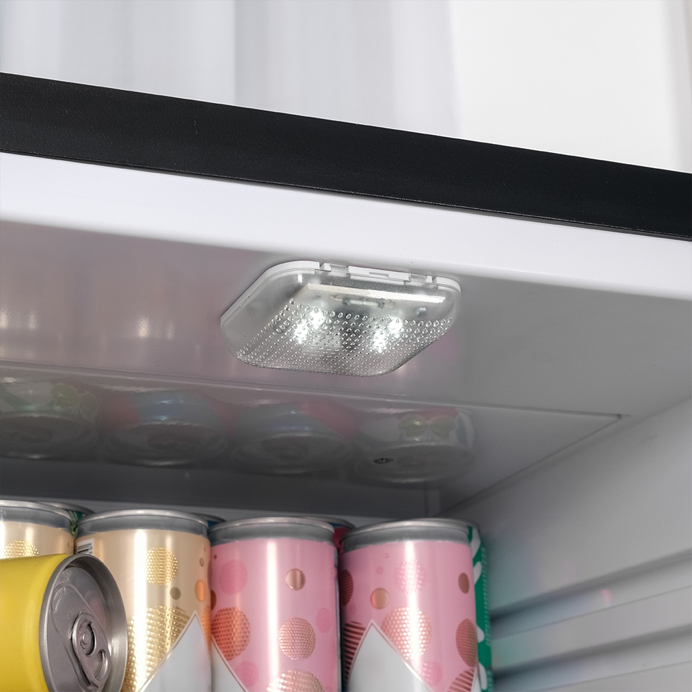 Мини-бар оснащен регулируемыми полками, чтобы организовать хранение в зависимости от ваших предпочтений. Две основные полки предназначены для бутылок и продуктов, а дополнительные секции на дверце подходят для небольших упаковок и закусок. Встроенная подсветка гарантирует комфортное использование даже в темное время суток. максимально эффективно используя пространство.