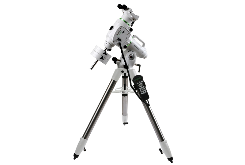 Монтировка имеет встроенный SNAP-порт. Можно подключить к нему фотокамеру и удаленно управлять ее затвором. Есть порт для автогида. Дополнительно монтировка снабжена удобной ручкой для переноски. В комплект поставки включена стальная тренога с регулируемыми по высоте ножками и лотком для аксессуаров.
