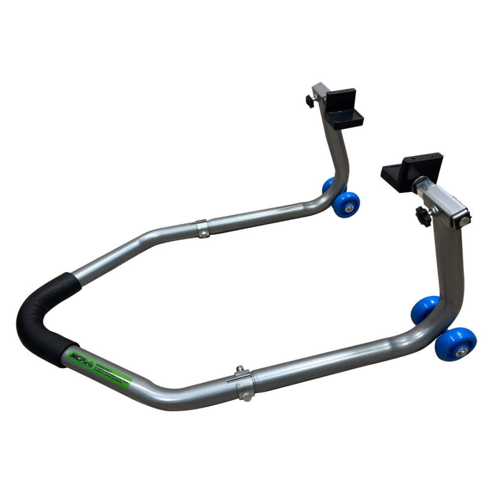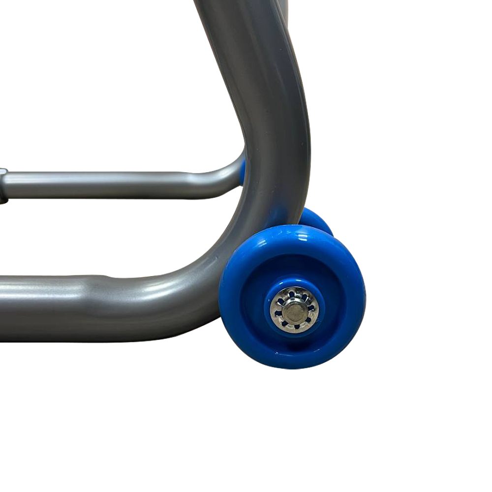 - Два сдвоенные колесика на подшипниках с мягким бесшумным ходом для удобства работы и возможности перемещения мотоцикла