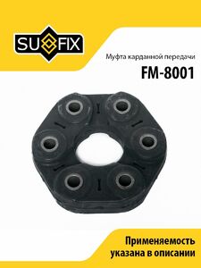 Муфта карданного вала SUFIX FM-8001. Применение: BMW 1(E81/E87/F20) 1.6-2.0 04> / 3(E36/E46/E90/F30) 2.0-3.0 90> / 5(E34/E39/F10) 2.0-3.5 88> / 7(E32/E38) 3.0-3.5 85> / X1(E84) 2.0-2.0D 10> / X3(F25) 1.6-2.0 10> / X5(E53/E70) 3.0-4.8 00>.
