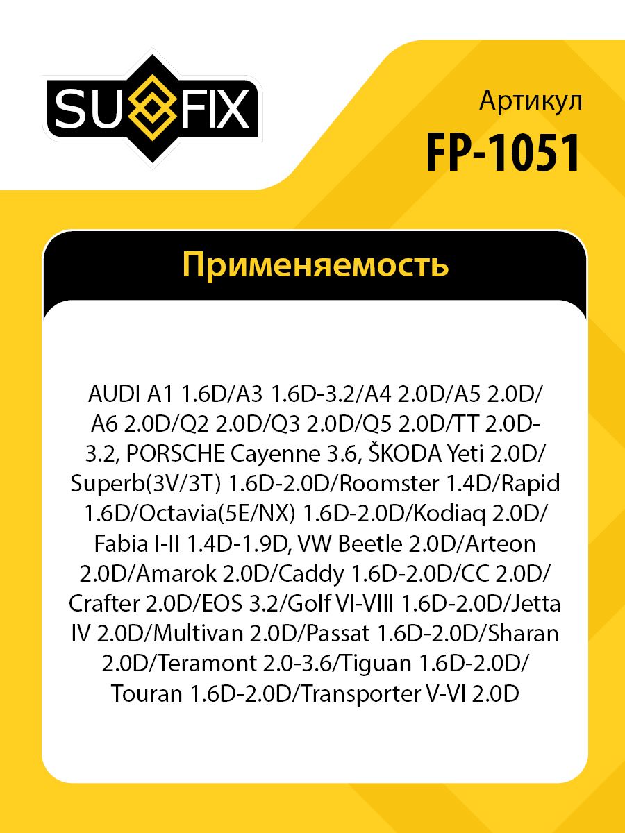 Муфта свободного хода генератора SUFIX FP-1051. Применение: AUDI A1 1.6D 14-18 / A3 1.6D-3.2 03-17 / A4 2.0D 09> / A5 2.0D 08> / A6 2.0D 04-18 / Q2 2.0D 16> / Q3 2.0D 11-18 / Q5 2.0D 13-17 / TT 2.0D-3.2 07>, PORSCHE Cayenne 3.6 10>, SKODA Yeti 2.0D 09-17 / Superb(3V/3T) 1.6D-2.0D 09> / Roomster 1.4D 07-10 / Rapid 1.6D 15> / Octavia(5E/NX) 1.6D-2.0D 12> / Kodiaq 2.0D 16> / Fabia I-II 1.4D-1.9D 05>, VW Beetle 2.0D 14-18 / Arteon 2.0D 17> / Amarok 2.0D 10> / Caddy 1.6D-2.0D 15> / CC 2.0D 11-16 / Crafter 30-35 2.0D 11> / EOS 3.2 06> / Golf VI-VIII 1.6D-2.0D 14> / Jetta IV 2.0D 14> / Multivan 2.0D 09-15 / Passat 1.6D-2.0D 05> / Sharan 2.0D 11> / Teramont 2.0-3.6 15> / Tiguan 1.6D-2.0D 08> / Touran 1.6D-2.0D 15> / Transporter V-VI 2.0D 09>.