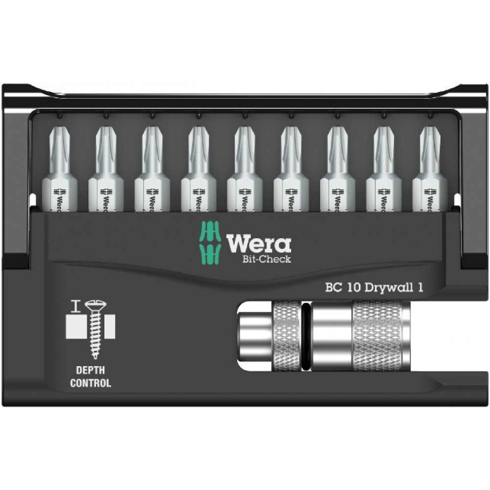 Набор бит с битодержателем Wera Bit-Check 10 Drywall 1, для гипсокартона, 10 пр., 1/4" C6.3 PH 2, WE-136011