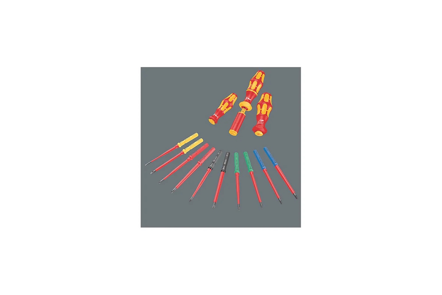 - Изолированные инструменты, часть отвёрток с зауженным стержнем, для безопасной работы под напряжением до 1000V Инструменты с поштучной проверкой по стандарту IEC 60900