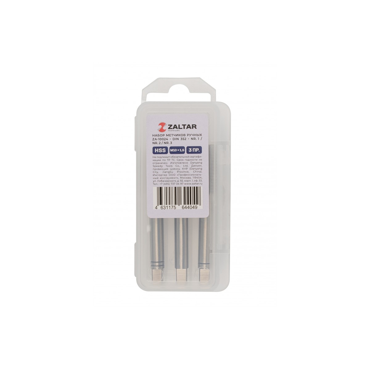 Набор метчиков ручных ZALTAR HSS DIN 352, 3 пр., Nr.1/Nr.2/Nr.3, M10 x 1.5
