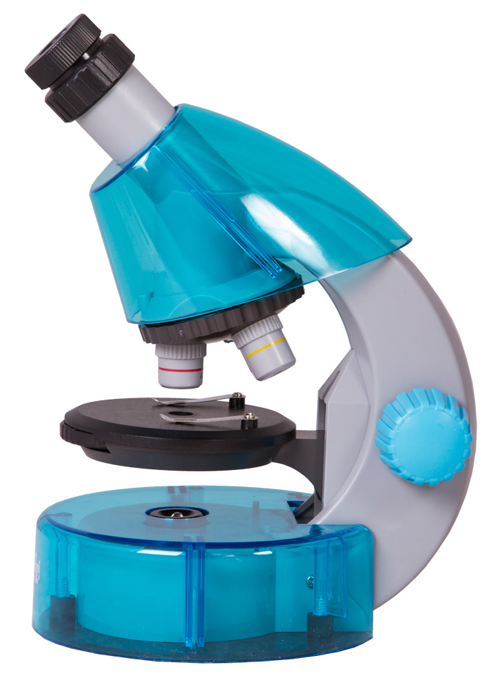 Хотя микроскоп Levenhuk LabZZ M101 Azure\Лазурь создан специально для детей, его оптическая конструкция не уступает «взрослым» моделям. Микроскоп снабжен тремя объективами (4x, 10x, 40x). Чтобы сменить объектив, нужно просто повернуть револьверное устройство. Особенность этой модели – выдвижной двухпозиционный окуляр с двумя увеличениями – 10 и 16 крат. Пользоваться таким окуляром удобно и просто. Двухпозиционный окуляр и три объектива позволяют получить широкий диапазон увеличений – от 40 до 640 крат.