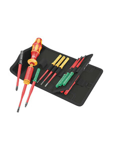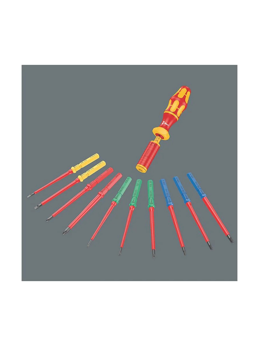 14 сменных отвёрток с защитной изоляцией (в т.ч. 12 с зауженным рабочим концом).