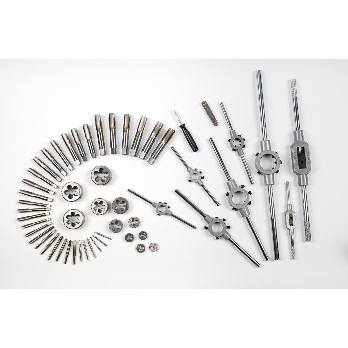 Набор резьбонарезного инструмента ZALTAR, STM 35 HSS, 54 пр., M3-M4-M5-M6-M8-M10-M12-M14-M16-M18-M20 Содержит оснастку самых востребованных типов и размеров для нарезания метрической резьбы с углом профиля 60°. Подходит для обработки углеродистой и легированной стали с прочностью до 900 Н/мм², алюминия, пластика и цветных металлов. Инструменты надежно закреплены в прочном металлическом чемодане, пригодном для хранения и транспортировки. Комплектация (54 предмета): Наборы ручных метчиков (черновой, средний, чистовой) DIN 352: M3 / M4 / M5 / M6 / M8 / M10 / M12 / M14 / M16 / M18 / M20 Плашки круглые DIN EN 22568, DIN 223 B, допуск 6g: M3 / M4 / M5 / M6 / M8 / M10 / M12 / M14 / M16 / M18 / M20 Метчикодержатели регулируемые DIN 1814: Gr. 1 / Gr. 3 Плашкодержатели DIN 225: 20x5 / 20x7 / 25x9 / 30x11 / 38x14 / 45x18 мм Отвёртка + резьбомер.