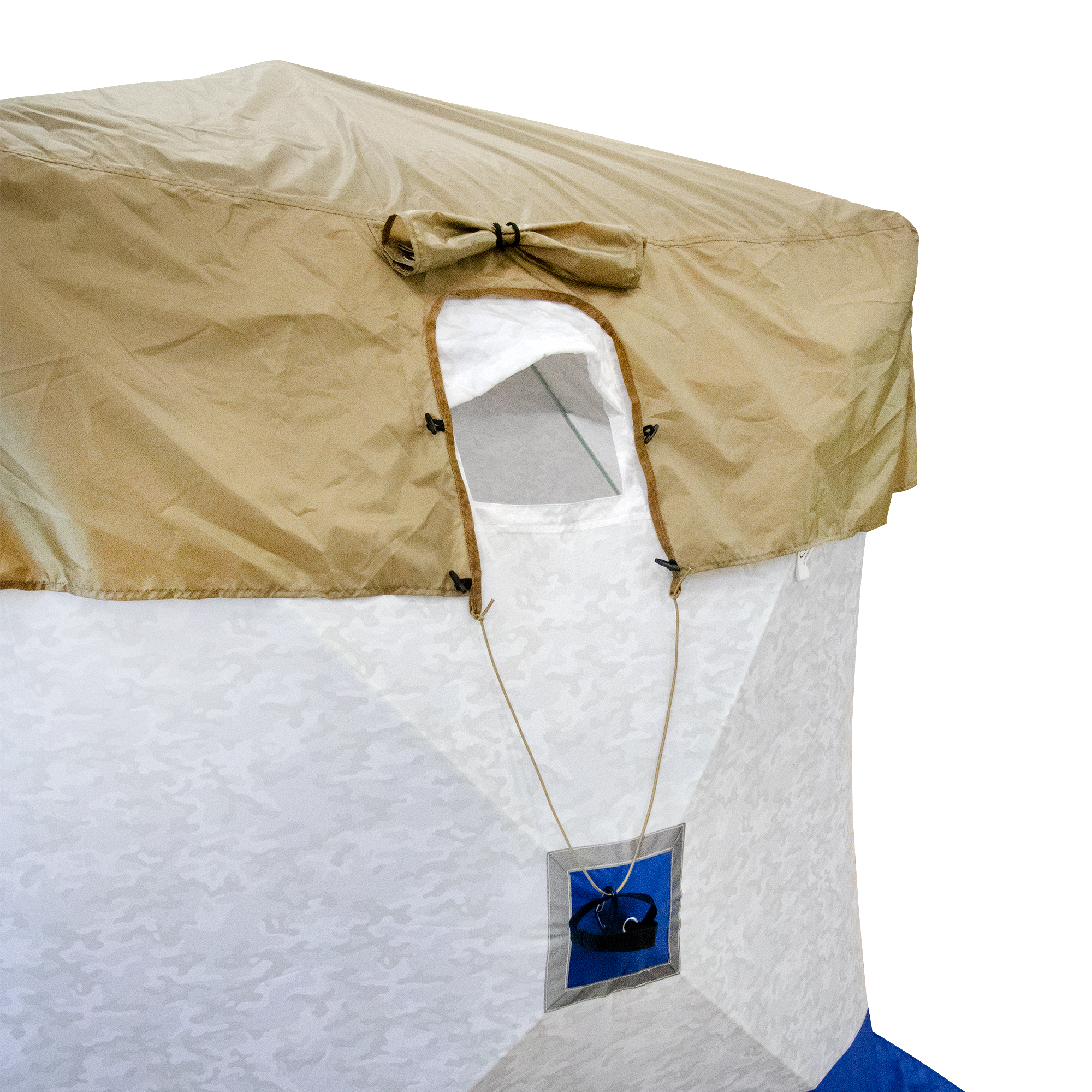 Накидка для зимней палатки «Следопыт» размером 134 × 134 см (в раскладке приближается к 1,5 × 1,5 м) предназначена для защиты палатки от тающего снега, дождя и конденсата. Особенно актуальна в условиях резких перепадов температур, когда снег на крыше палатки начинает подтаивать и может просачиваться внутрь.