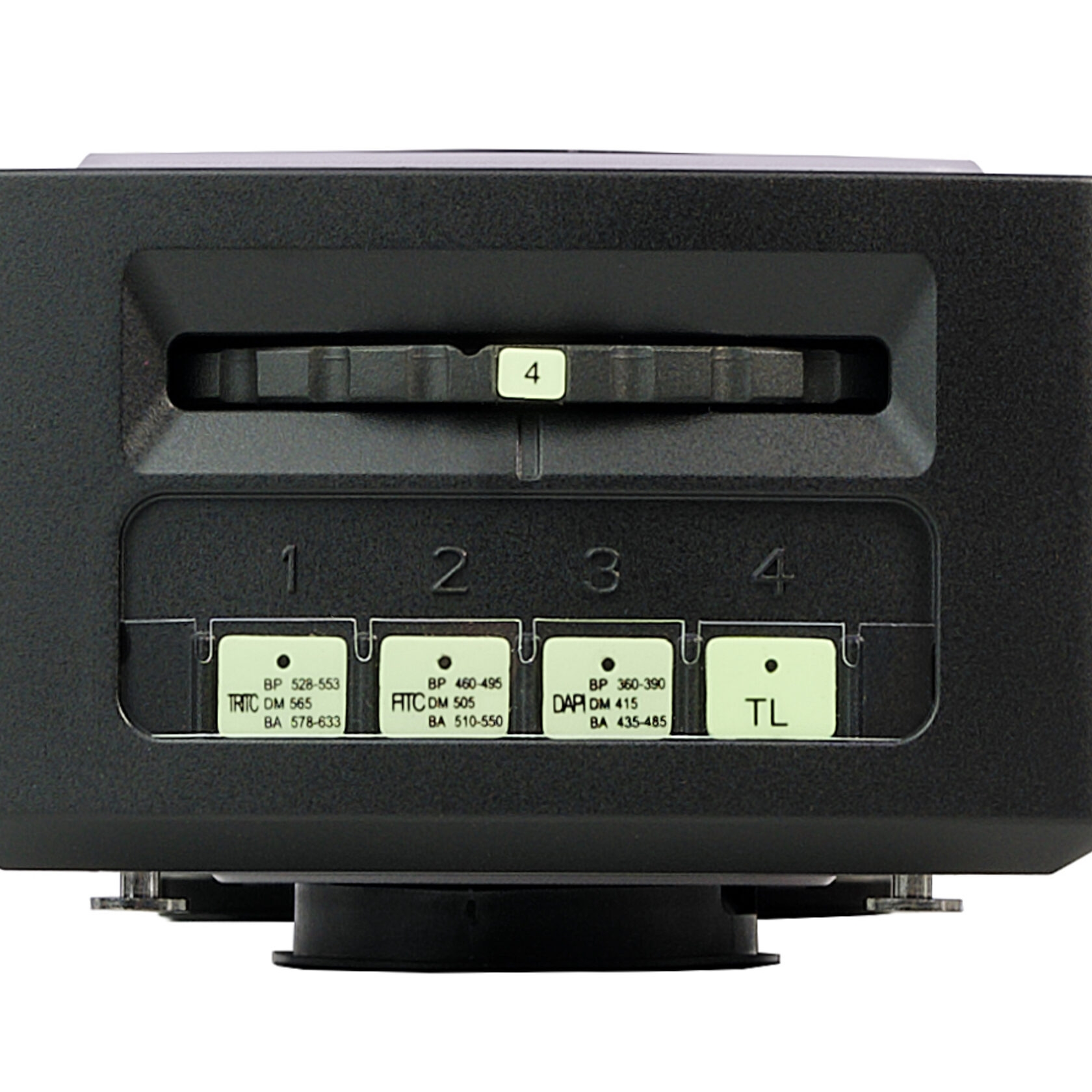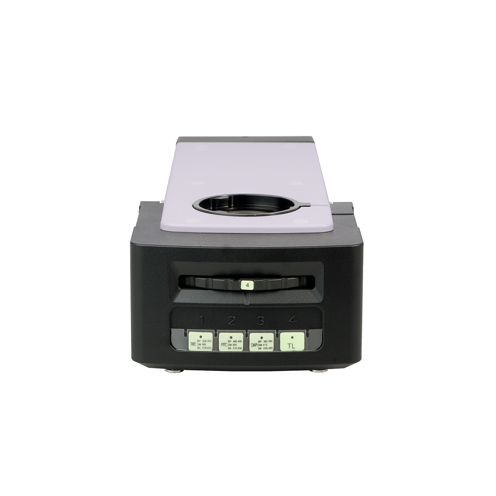 Насадка устанавливается в оптический путь между визуальной насадкой и штативом. В корпусе насадки находится поворотная четырехпозиционная турель с тремя люминесцентными узкополосными фильтрами для флюорохромов DAPI, FITC и TRITC. Рабочий фильтр вводится в ход лучей поворотом кольца. Одно положение турели соответствует наблюдениям в светлом поле.