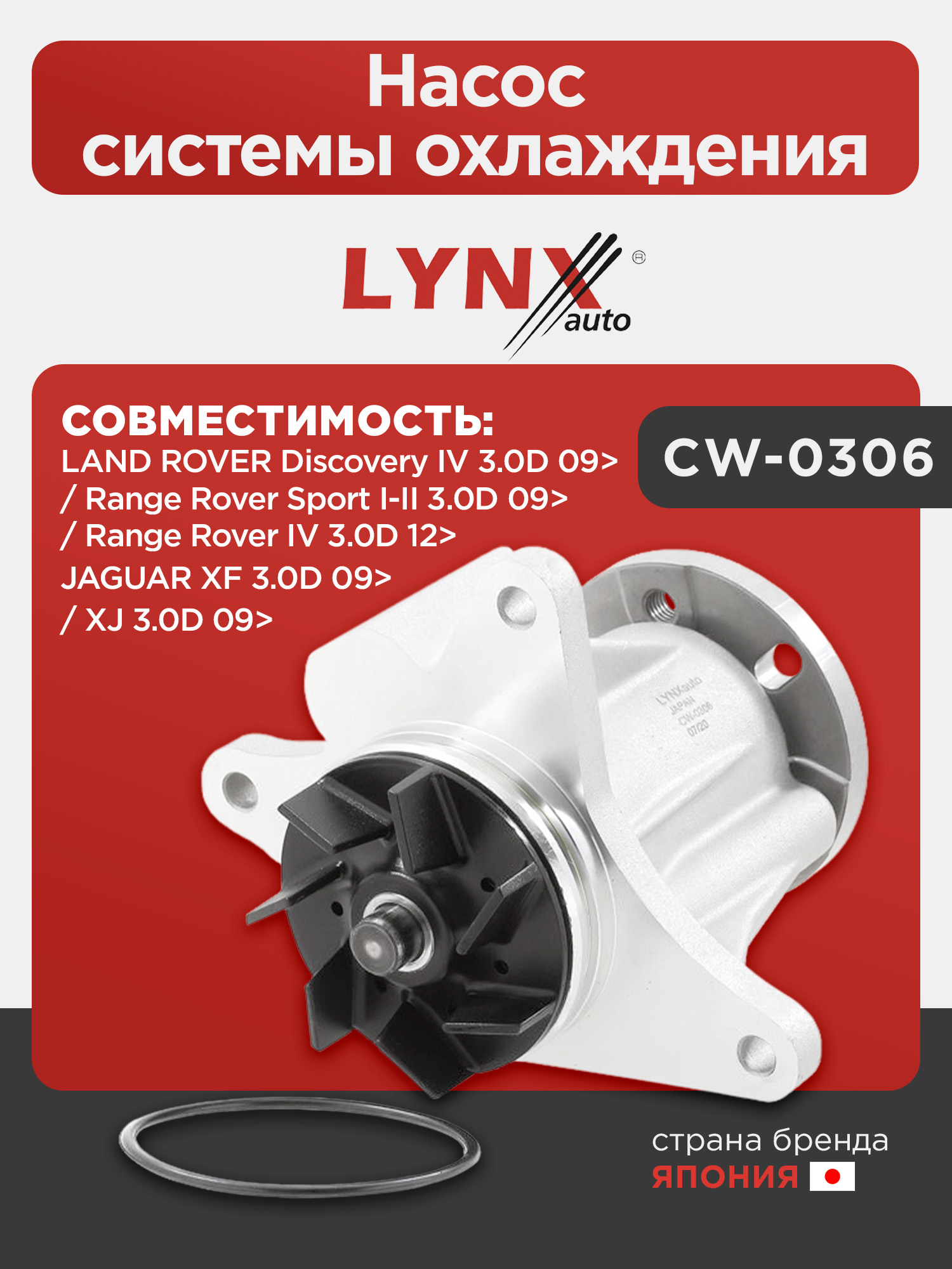 Насос системы охлаждения LYNXauto CW-0306. Для: LAND ROVER Discovery IV 3.0D 09> / Range Rover IV 3.0D 12> / Range Rover Sport I-II 3.0D 09>, JAGUAR XF 3.0D 09> / XJ 3.0D 09>