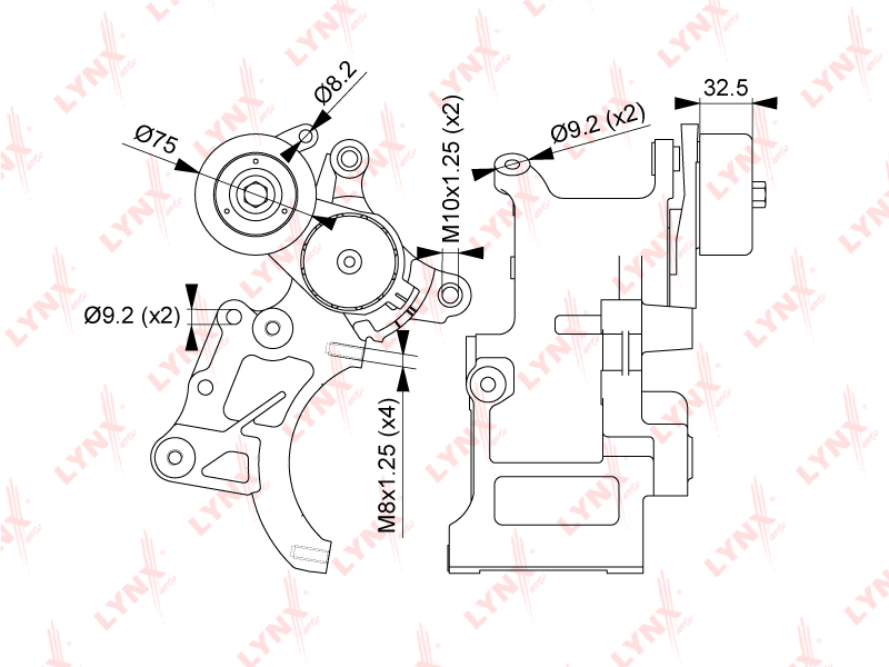 Натяжитель / приводной LYNXauto PT-3264. Для: TOYOTA Land Cruiser Prado(120/150) 3.0D 02> / Land Cruiser(90) 3.0D 00-02