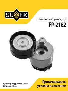 Натяжитель/приводной SUFIX FP-2162. Применение: MITSUBISHI Carisma 1.9D 00>/Space Star 1.9D 01>, NISSAN Primera(P12) 1.9D 02>, OPEL Movano 1.9D 01>/Vivaro 1.9D 01>, RENAULT Duster 2.0 12>/Laguna I-III 1.8-2.0 99>/Master II 1.9D 01>/Trafic II 1.9D-2.0 01>, VOLVO S40 I 1.9D 00-03.