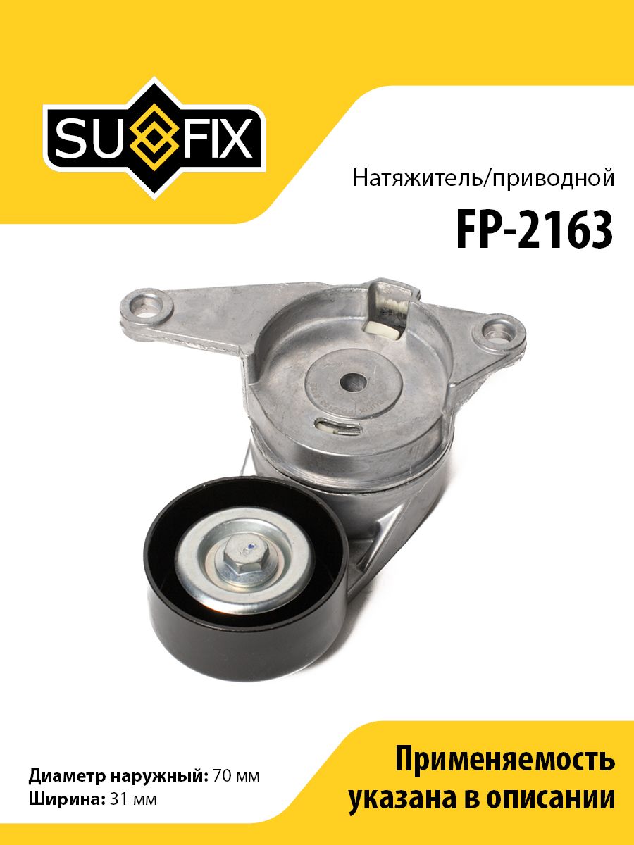 Натяжитель/приводной SUFIX FP-2163. Применение: CHEVROLET Captiva 3.0-3.2 06>, OPEL Antara 3.0-3.2 07>/Insignia 2.8 08>/Vectra C 2.8 05>, SAAB 9-3 2.8 05-15/9-5 2.8 10-12.