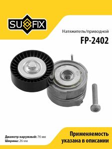 Натяжитель/приводной SUFIX FP-2402. Применение: AUDI A4 3.2 04-12/A4 3.0-3.2 04-12/A5 3.2 08-12/A5 3.0 11-17/A6 2.4-3.2 04-11/A6 Allroad 3.0 08-18/A7 2.8-3.0 11-18/A8 2.8-3.2 07-10/Q5 3.0-3.2 12-18/Q7 3.0 08-18.