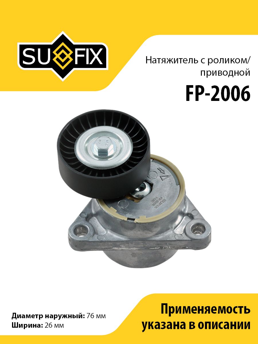 Натяжитель с роликом / приводной SUFIX FP-2006. Применение: CHEVROLET Aveo 1.2-1.5 05> / Cruze 1.6 09> / Kalos 1.2-1.4 05> / Lacetti 1.4-1.6 05> / Lanos 1.6 05> / Nubira 1.4-1.6 05> / Rezzo 1.6 05>, DAEWOO Kalos 1.4 02> / Lacetti 1.4-1.6 04> / Lanos 1.6 97> / Nexia 1.6 08> / Nubira 1.6 97> / Rezzo 1.6 00>.