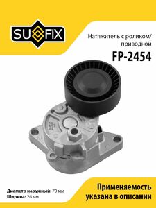 Натяжитель с роликом/приводной SUFIX FP-2454. Применение: BMW 3(E36/46) 2.0-3.0 90-05/5(E34-60) 2.0-3.0 89-10/7(E38) 2.8 95-01/7(E65-67) 3.0 03>/X3(E83) 2.5-3.0 04>/X5(E53) 3.0 00>/Z3(E36) 2.0-3.0 99-03/Z4(E85) 2.2-3.0 03>.