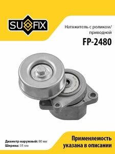 Натяжитель с роликом/приводной SUFIX FP-2480. Применение: NISSAN Primera(P12) 2.0 02>/Teana(J31) 2.0 03-06/X-Trail(T31) 2.0-2.5 01>, RENAULT Koleos 2.5 08>.