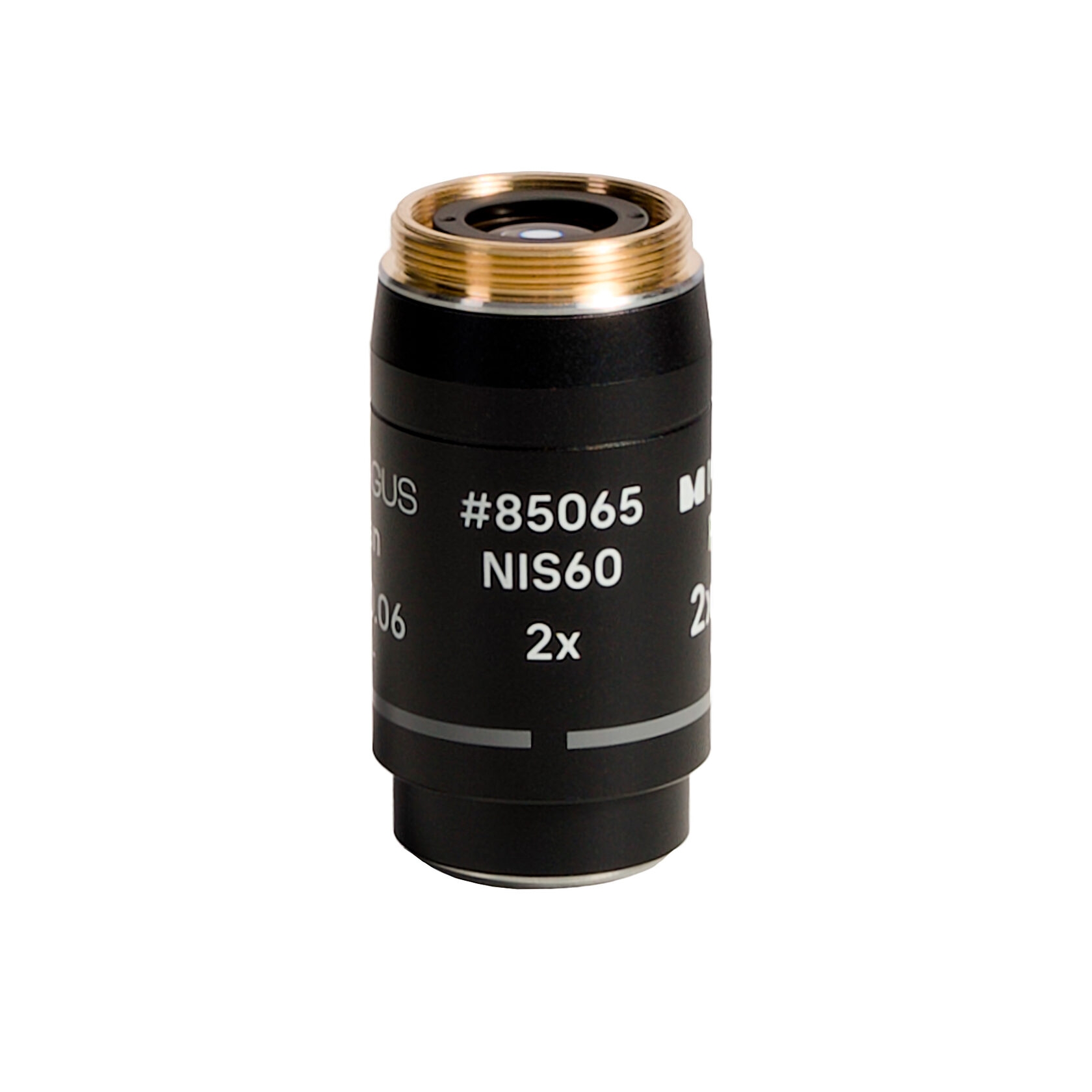 Объектив 2х при работе с окуляром 10х/22 мм дает поле зрения 11 мм, при этом глубина резкости составляет 76 мкм, поэтому объектив используют для сканирования объекта и поиска участка исследования. Для работы с объективом 2х рекомендуется удалять фронтальную линзу конденсора, чтобы осветить полное поле зрения.