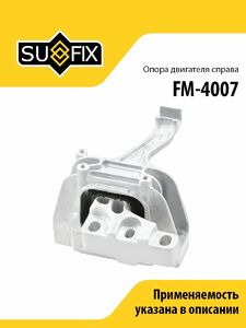 Опора двигателя R SUFIX FM-4007. Применение: AUDI A3 1.4-1.5 14> / Q2 1.4 16>, SKODA Karoq 1.5 17> / Kodiaq 1.4-2.0D 16> / Octavia(5E) 1.4 12>, VW Golf VII-VIII 1.4-1.5 12>.