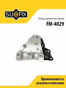 Опора двигателя R SUFIX FM-4029. Применение: SKODA Fabia 1.6 07-14 / Rapid 1.6 07-15 / Roomster 1.6 06-15, Polo sedan 1.6 10>.