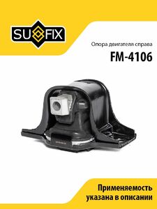 Опора двигателя R SUFIX FM-4106. Применение: RENAULT Kangoo II 1.6 08> / Megane II 1.4-1.6 02-08 / Scenic II 1.4-1.6 03>.